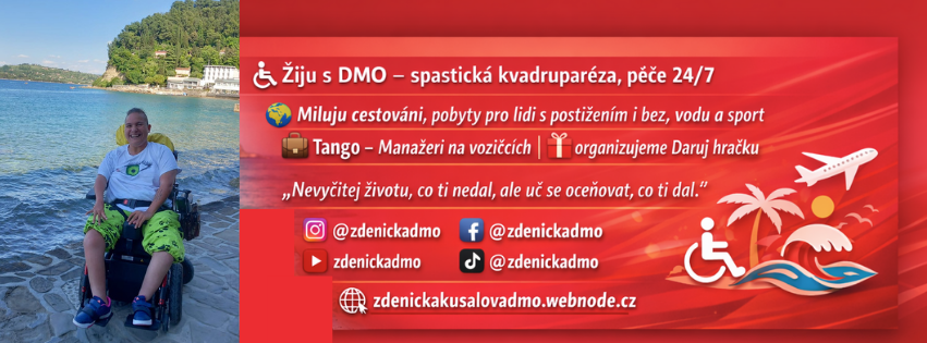 Ahoj, jsem Zdeňka a s dětskou mozkovou obrnou sdílím svůj život, zážitky i zkušenosti. Sleduj také moje profily na sociálních sítích.